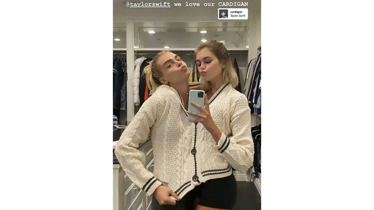 Un cardigan mandato da un'altra amica del loro "cerchio magico", Taylor Swift, che lo ha inviato a tutti gli amici più stretti per promuovere Cardigan, il primo singolo estratto dal suo ultimo album, Folklore. Quella tra Cara Delevingne e la figlia di Cindy Crawford sembra un'amicizia profonda, che per il gossip è un possibile flirt.