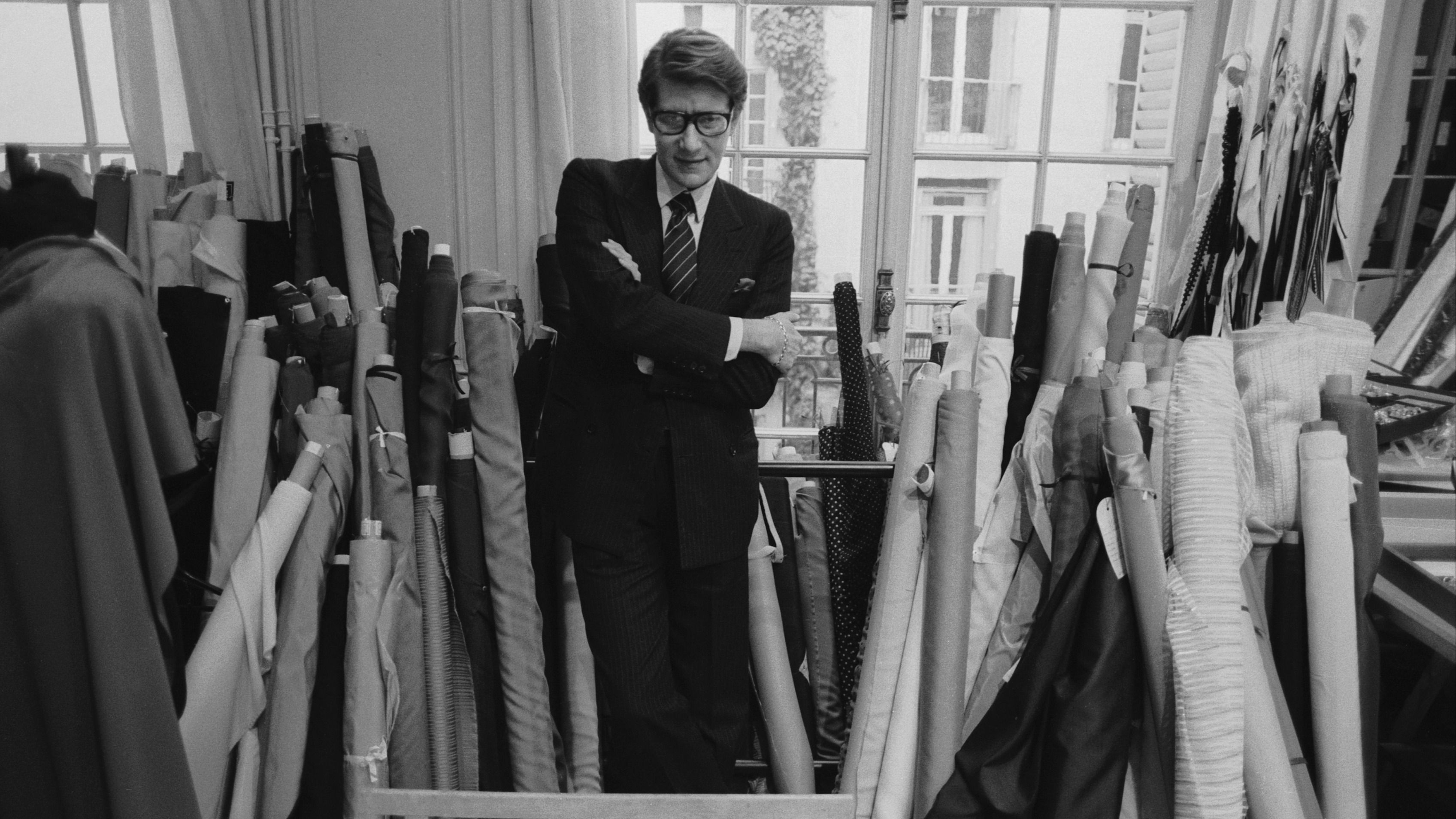 Yves Saint Laurent nel suo studio parigino, 1982 Credit: Getty Images