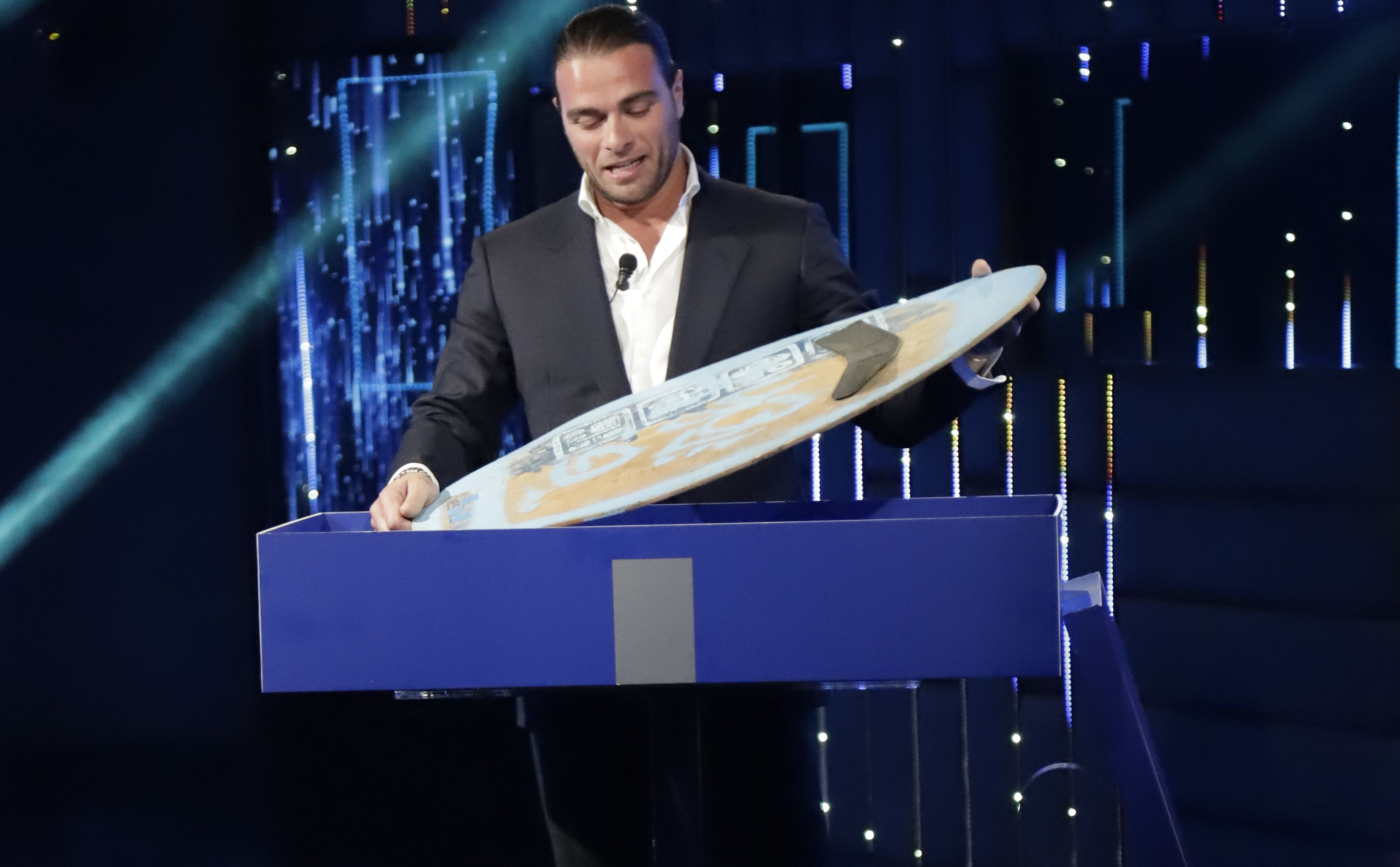 Oltre alla lettera, il ragazzo riceve anche due regali: uno skimboard e una medaglietta. "Questa è una tavola da surf che ho costruito io quando ero un ragazzo, mentre sulla medaglietta c'è una frase che mia mamma mi ha scritto in occasione del mio diciottesimo compleanno: mordi la vita", spiega Sergio.