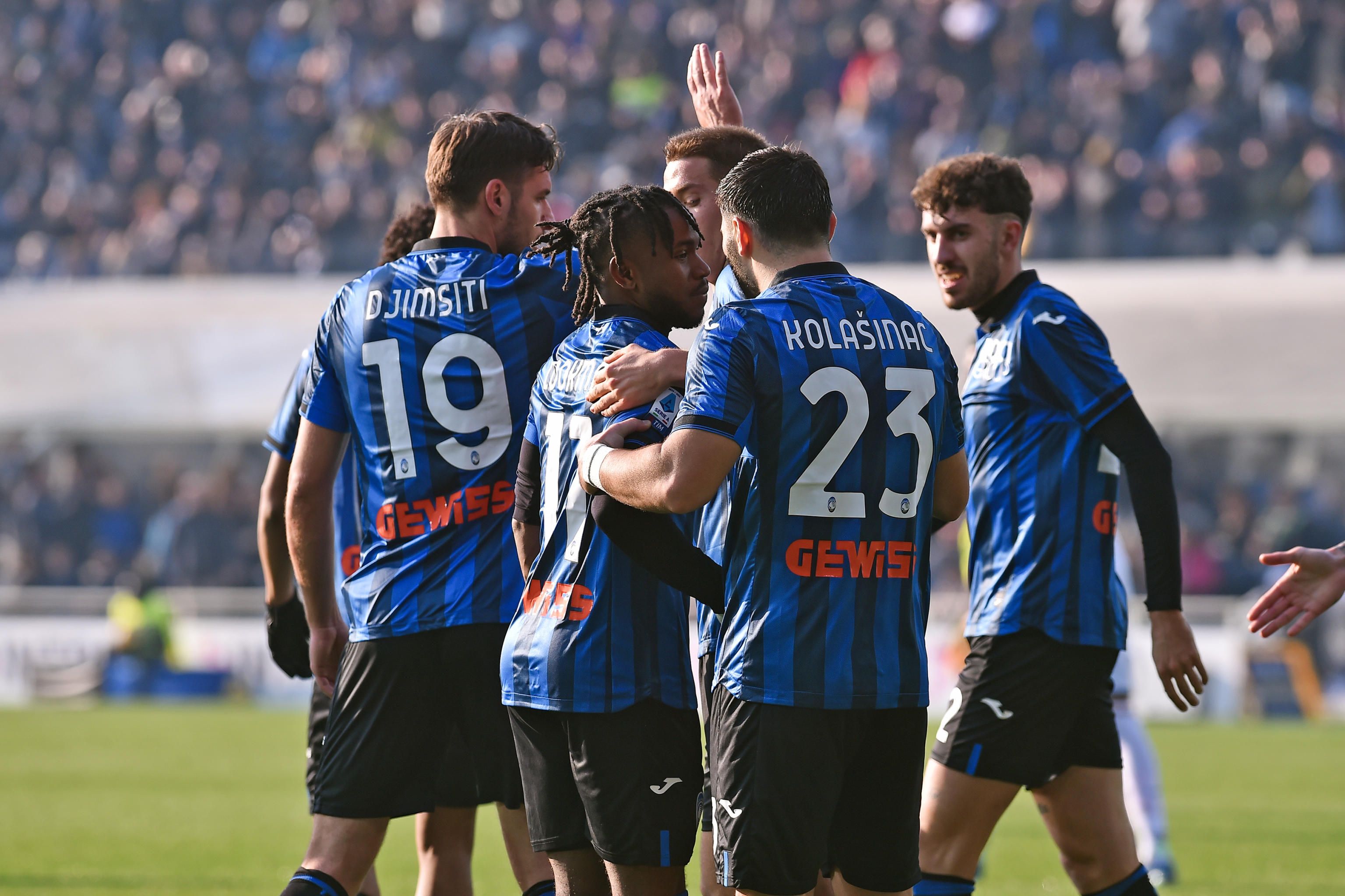 I giocatori dell'Atalanta esultano dopo un gol