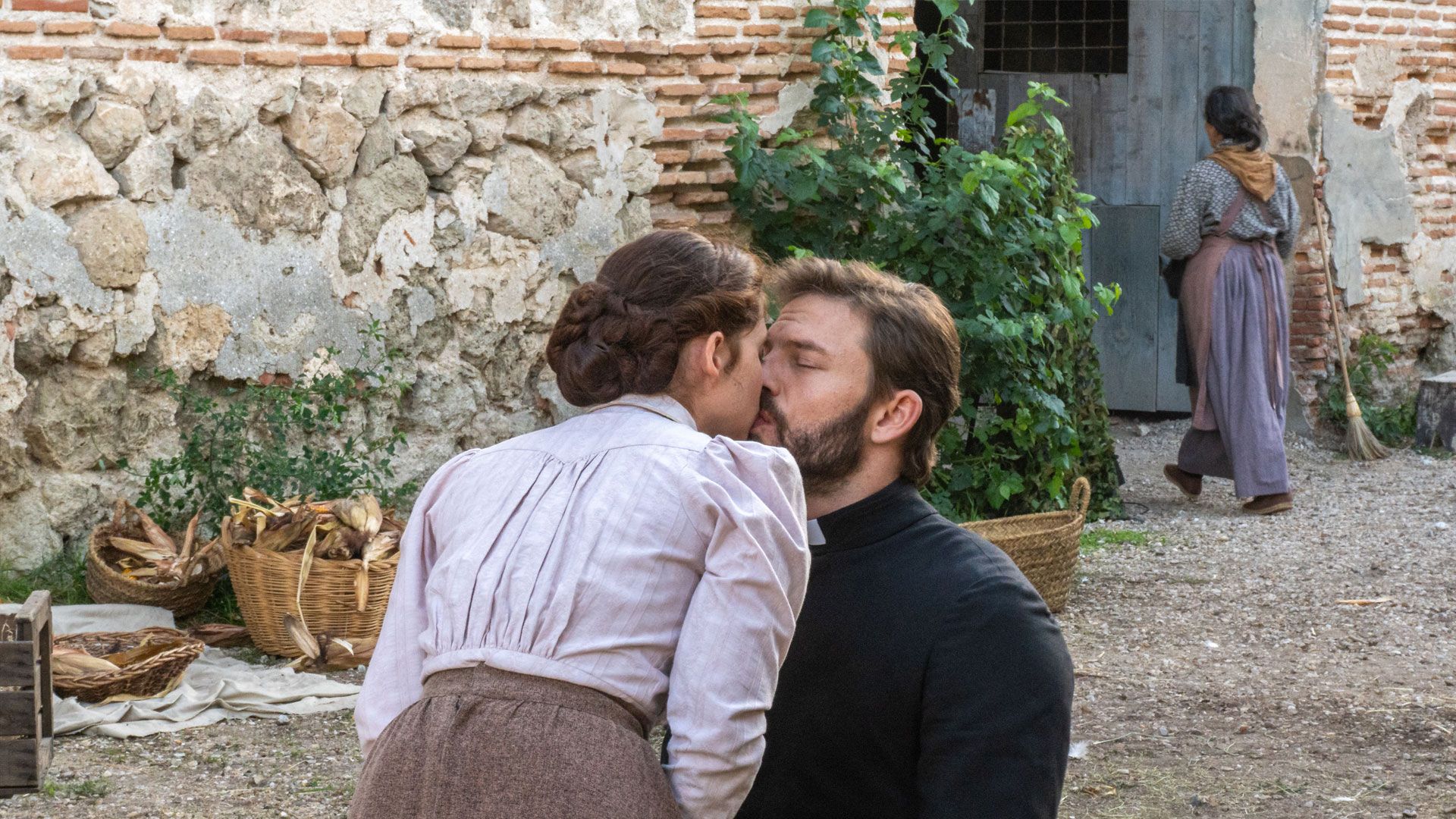 Sara Molina (María) e Daniel Schröder (Padre Samuel) in una scena de La promessa